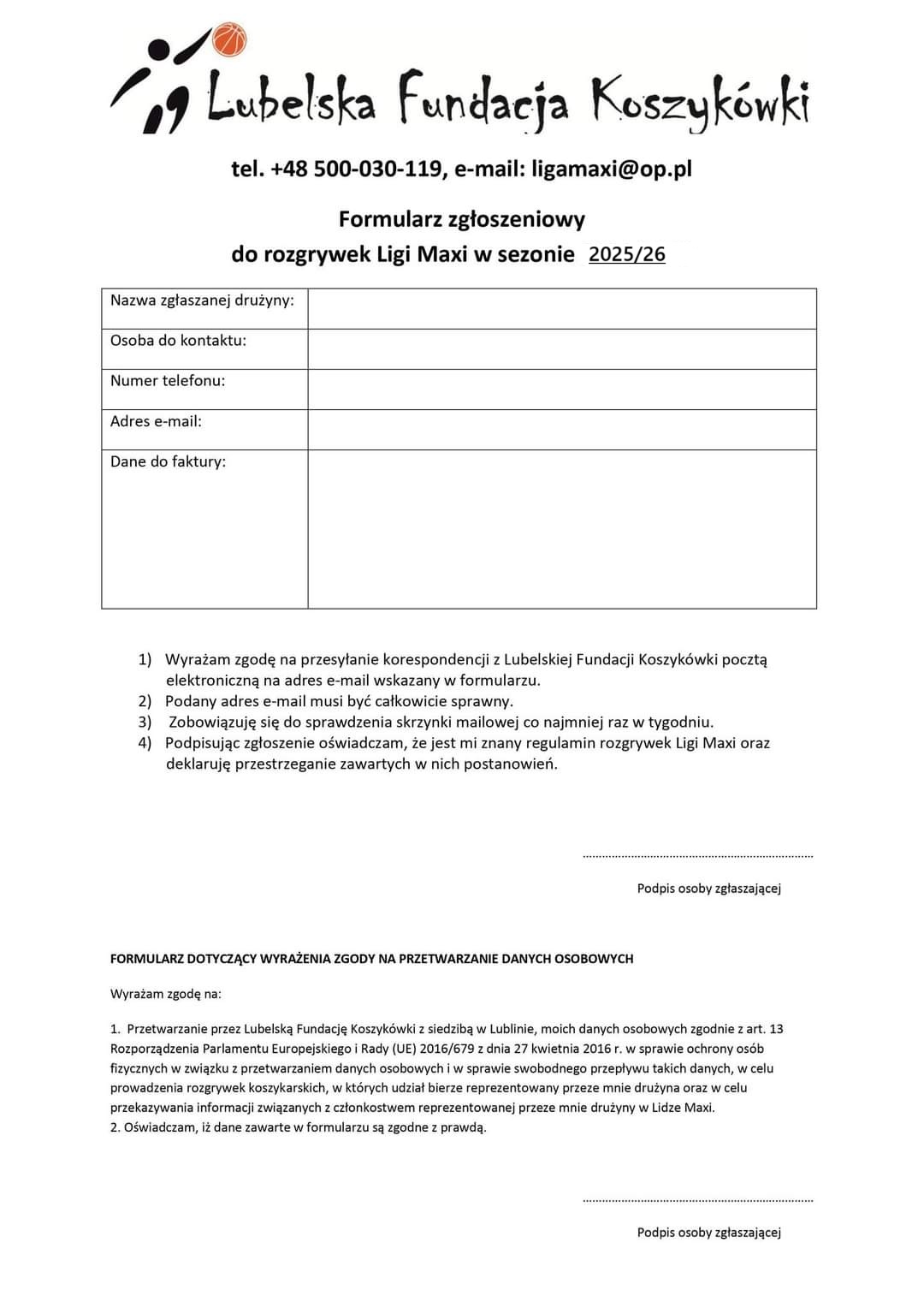 Zapraszamy drużyny, które zadeklarowały chęć udziału w Lidze Maxi 2025/2026 do oficjalnej rejestracji za pośrednictwem formularza zgłoszeń.